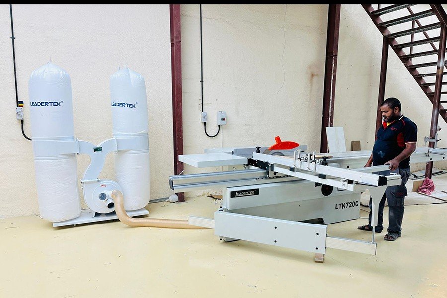 We successful installation of a Sliding Table Saw LKT720C at our client’s facility in Al Qusais Industrial Area 3, Dubai. This advanced woodworking machine is engineered for precision cutting, smooth sliding action, and superior finishing making it ideal for cabinetry, furniture manufacturing, and interior fit-outs.
